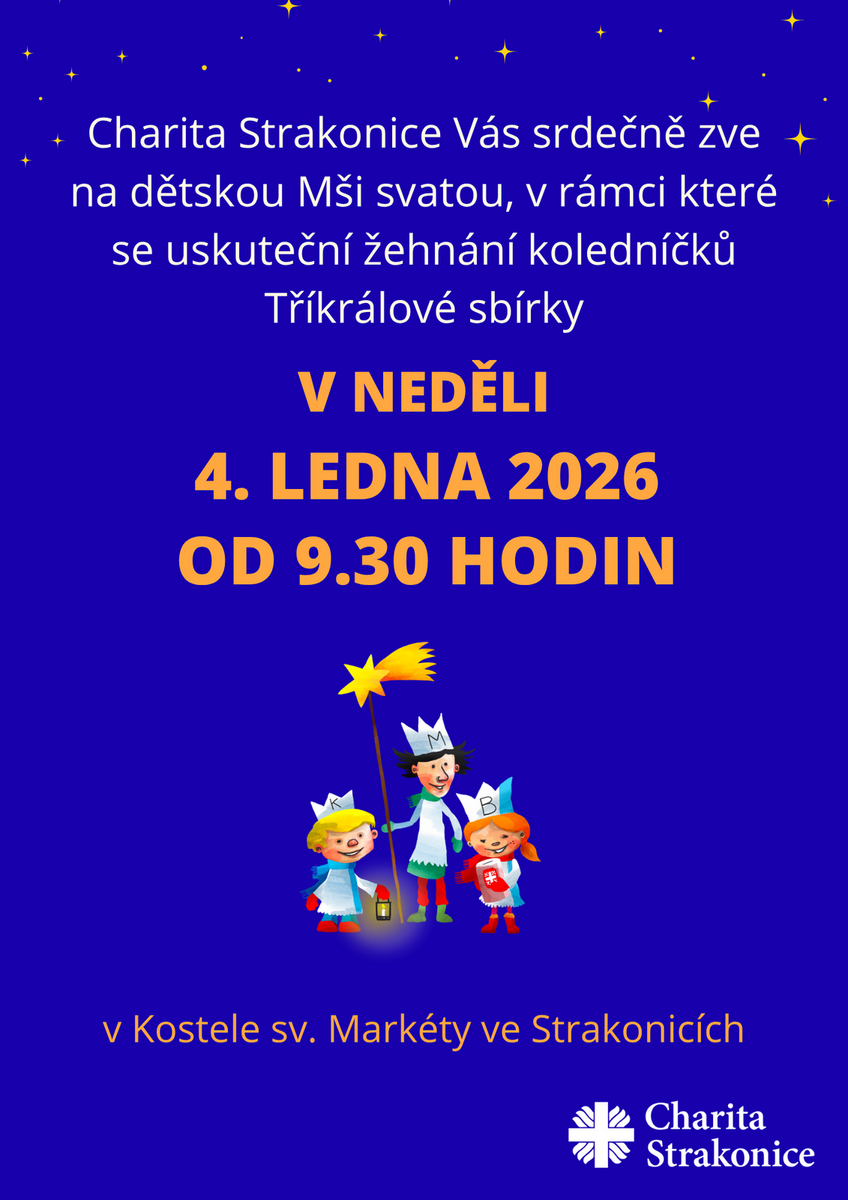 Přijďte v neděli 4. 1. 2026 od 9:30 hodin do Kostela sv. Markéty ve Strakonicích na slavnostní vyslání koledníčků v rámci dětské mše.