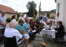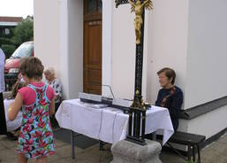Pouťová mše u kapličky v Sousedovicích s páterem Janem Löffelmannem v neděli 18. srpna 2013.
