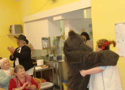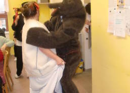 Scénku „Tancování s medvědem“ připravili zaměstnanci charity pro Obyvatele Domu klidného stáří sv. Anny na závěr Masopustu. V úterý 4. 3. 2014 přivedl medvědář medvěda do jídelny domova. Medvěda, který je znamením plodnosti, odchytila bába. Její vnučka Kačenka ne a ne se provdat. Bába vychvalovala přednosti své vnučky, nabízela ji pánům v jídelně a roznášela koblihy, které Kačenka napekla. Medvěd si s Kačenkou zatancoval tak vehementně, že se úplně utancoval a upadl. Bába s medvědářem medvěda zachránili dobrým pitím a mezitím již Kačenka objímala svého ženicha. Jídelna burácela smíchem. „Vnučku jsme provdali, medvěda vzkřísili, s bábou se napili, tak zase za rok,“ uzavřel scénku medvědář.