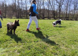 Celkem bylo 9 stanovišť. Třásně, kde musel pejsek projít překážkou udělanou z třásní. Druhým stanovištěm byly kroužky. Zde páníček házel kroužky na kužel a zajímavé byly reakce pejsků. Následovala odmítačka do vrchu, kde musel pes projít trasu plnou pamlsků a neměl se jich všimnout. Hodně pejsků si na tomto stanovišti pochutnalo. V Předních Zborovicích si účastníci vyzkoušeli, jak motivovat psa, aby se nebál neobvyklých situací. Musel přejít kladinu, kde byly přibité pet lahve. Dalším stanovištěm byla odkládačka. Na rozcestí nad Sousedovicemi čekalo na pejsky překvapení ve formě skořápek. Zde si měl pejsek zvolit, pod kterým kelímkem má schovaný pamlsek. Každý z pejsků si svůj pamlsek našel a pochutnal si.