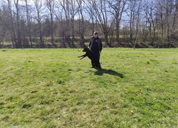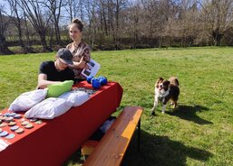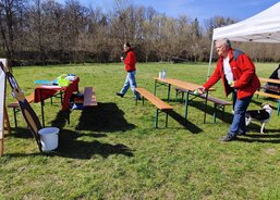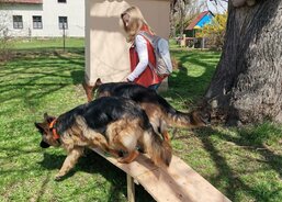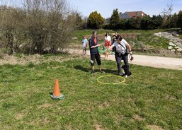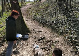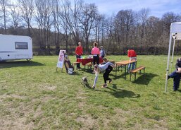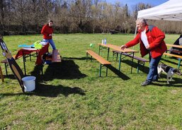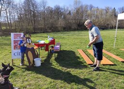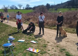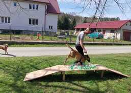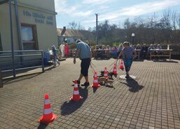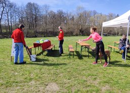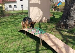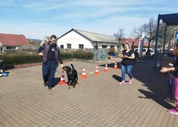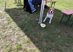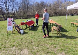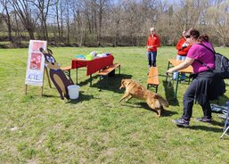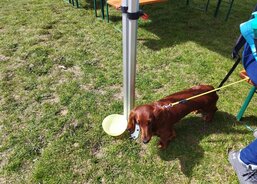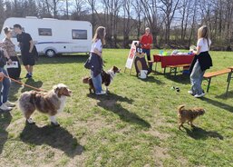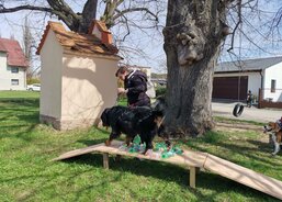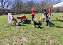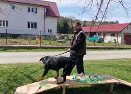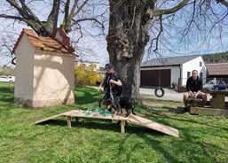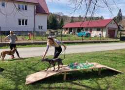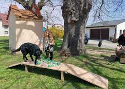 Na cestě zpět do Radošovice na psy čekala překážková dráha. V cíli si pak páníčci mohli vyzkoušet svou mušku. Házeli do kyblíku pískací míčky před „maskotem jménem Hubert“ a kolikrát byla velmi zajímavá reakce jak pejsků, tak páníčků.