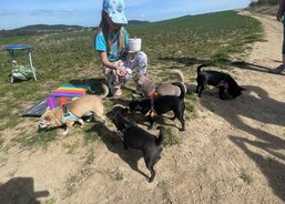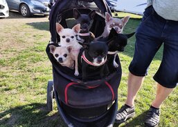 Velkým překvapením byli nejmenší poslední účastníci pochodu. To z auta vystoupila paní a vyndala jednoho pejska, pak vystoupil pán a vyndal kočárek a začala se tvořit malinkatá smečka. Celkem se objevilo 6 čivav. Ty naše obyvatele překvapily příjezdem v kočárku a vykouzlily tím velký úsměv na tváři u všech obyvatel.