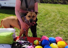 Následovalo předání Diplomu za účast Psího pochodu pro Charitu, a každý z pejsků si mohl vybrat odměnu.