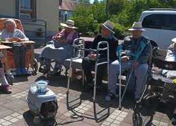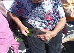 A jelikož jsou všechna mláďátka řádně „vymazlená“, vydržela ležet obyvatelům na klíně a nechala se hladit i krmit. O návštěvu králíčka nepřišli ani obyvatelé, kteří zůstali na pokojích. Všichni si návštěvu měkoučkých chlupáčů krásně užili. Zvířátka dovezla naše zdravotní sestřička Ema. Moc děkujeme za radost, kterou z nich naši obyvatelé měli.