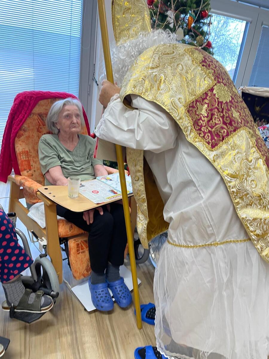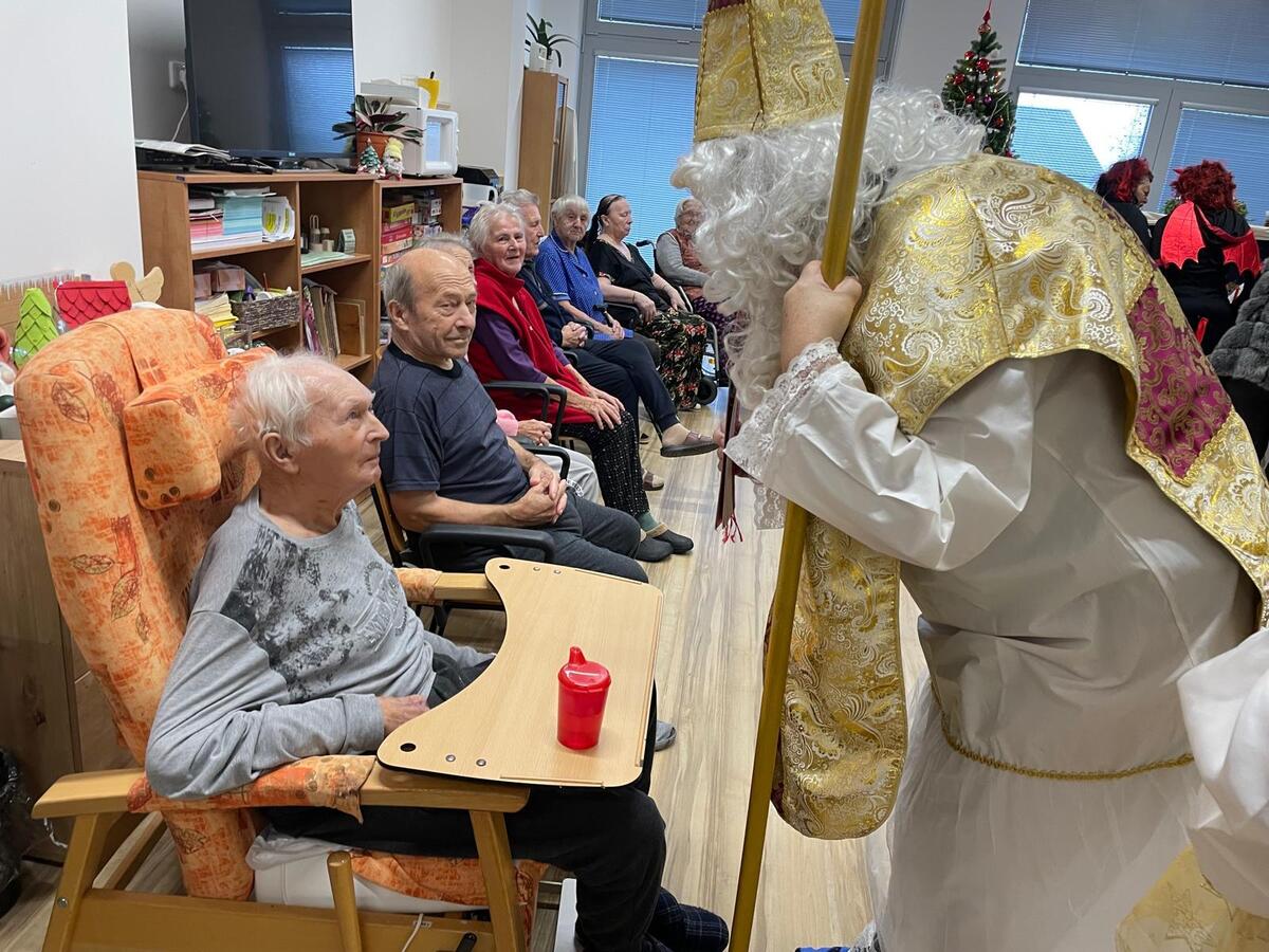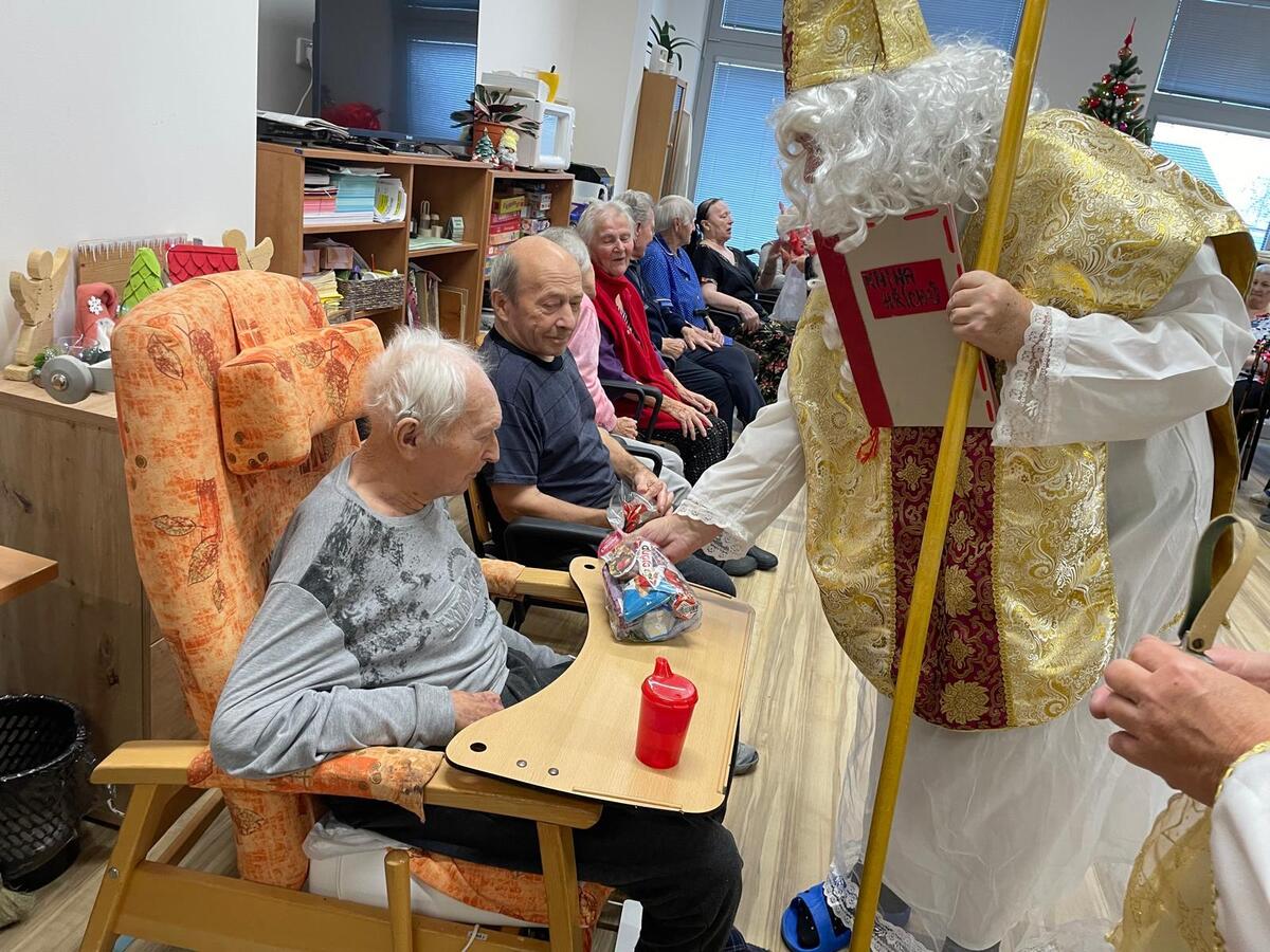 Mikulášova návštěva však neskončila ve společenské místnosti. Spolu se svými pomocníky se vydali na pokoje za obyvateli, kteří se nemohli zúčastnit osobně. Díky tomu se malé kousky radosti dostaly skutečně ke každému, kdo po nich toužil.