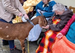 Viděli jste roztomilejší kozí plemeno? Říká se mu anglo-nubijské a tyhle fešandy k nám přijely ze Štěkně, kde si jejich majitelka zařizuje kozí farmu. Mléko těchto koz je nejen zdravé, ale i velmi chutné bez charakteristického kozího aroma. O tom jsme se mohli přesvědčit i my v Domě klidného stáří sv. Anny, protože návštěva byla spojená s ochutnávkou produktů kozí farmy. Kozy jsou známy jako terapeutická zvířata a bylo to znát! Vykouzlily úsměv na tvářích všech přítomných. Celá akce se uskutečnila pod záštitou projektu „Sousede, na slovíčko“, který je podpořen z fondu Nadace Via a Kaufland Česká republika. Děkujeme za podporu.