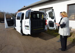 Oblastní charita Strakonice převzala 26. února 2021 nový vícemístný automobil s plošinou, která umožňuje převoz člověka na vozíku.
