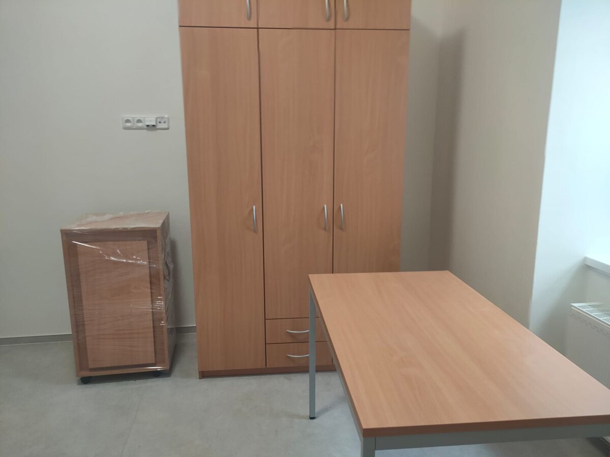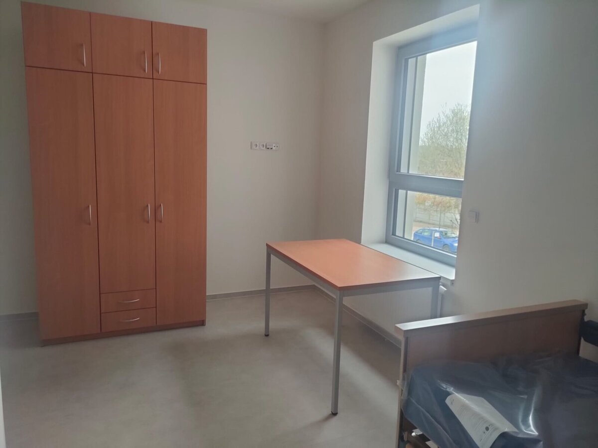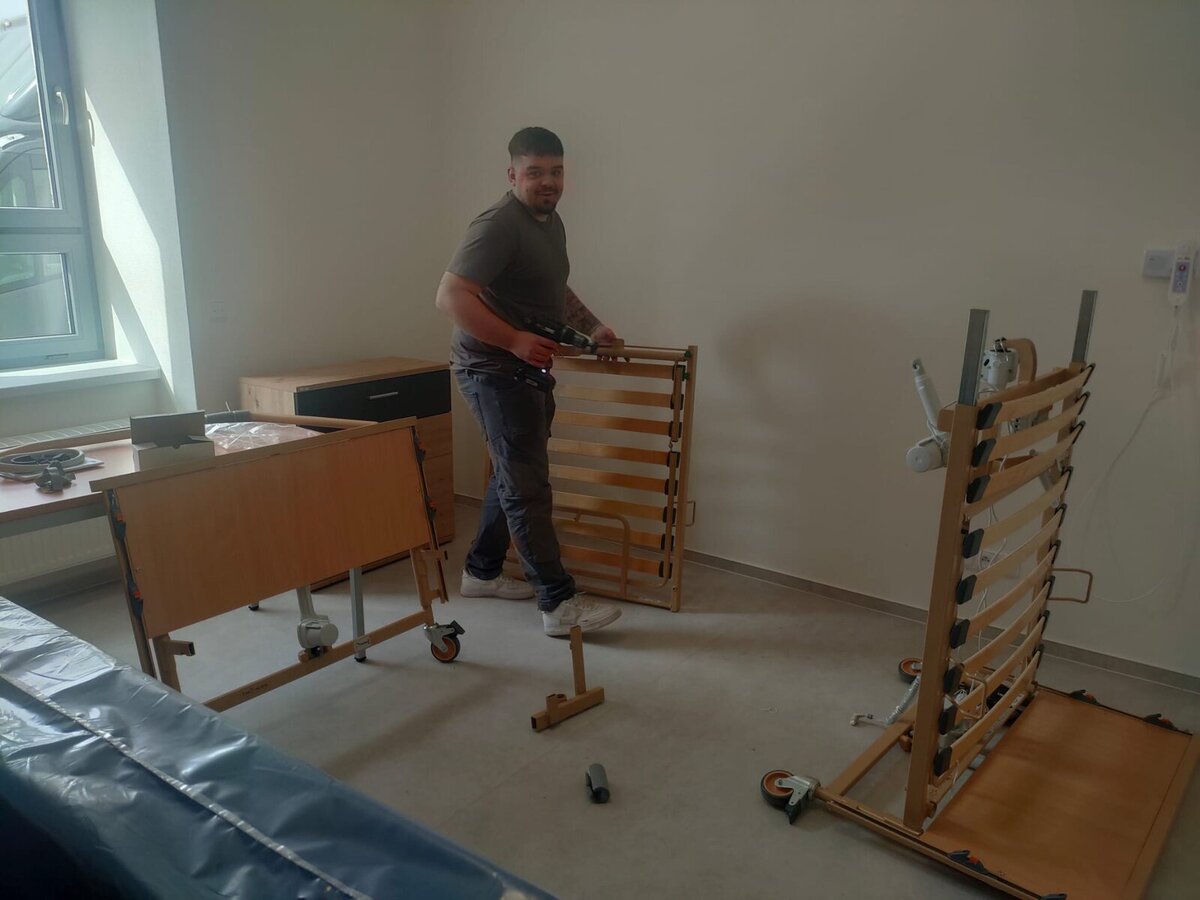 V těchto dnech jsou pokoje vybavovány skříněmi, stolky, polohovacími postelemi atd.