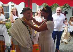 Akce byla v duchu antického Řecka a tak náš obyvatel pan Antonín vyrobil jako poděkování krásnou amforu pro pořadatele.