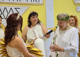 Náš tým reprezentovali: Zeus, Héra, Arfodité, Artemis a Athéna – všichni v ručně vyrobených kostýmech bohů.