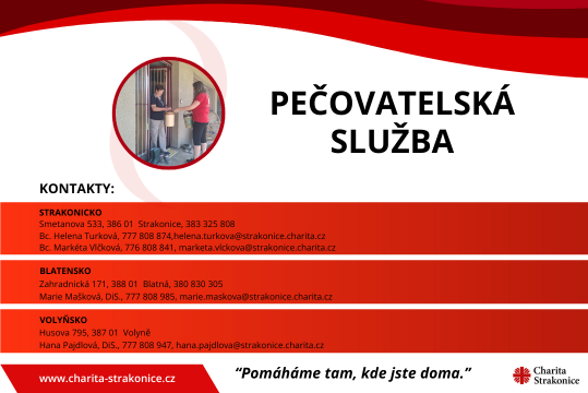 Denně se setkáváme s uživateli, kteří třeba už nezvládnou dojít na nákup, připravit si jídlo, dojít do sprchy nebo potřebují doprovod k lékaři. Pro ně jsme tu my. Služba je poskytována každý den včetně víkendů a svátků v době od 7 do 19 hodin na Strakonicku, Volyňsku a Blatensku.
