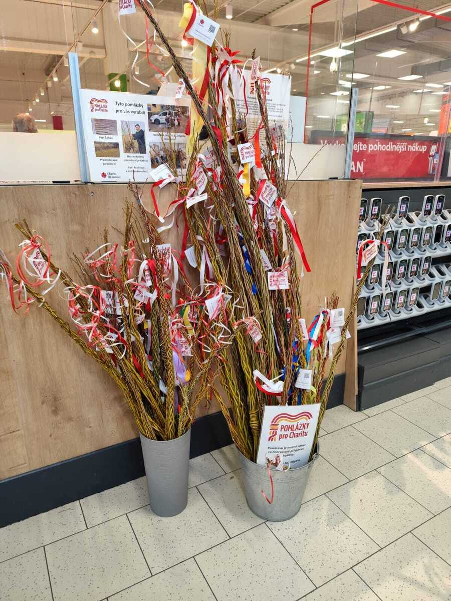 Velké poděkování patří také firmě Nixe s. r. o., která všem zapojeným charitám do této akce věnovala stuhy, jež pomlázky krásně ozdobily.
