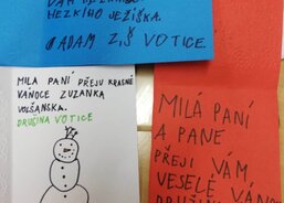 A do jakých škol a školek posíláme naše poděkování? Základní škola Povážská Strakonice, ZŠ a MŠ Votice, ZŠ Mirotice, ZŠ Volyně, ZŠ Vodňany. Velké poděkování patří i MŠ Husovy sady v Blatné, jejíž děti kromě krásných přáníček přibalily pro naše klienty i celou krabici dárečků.